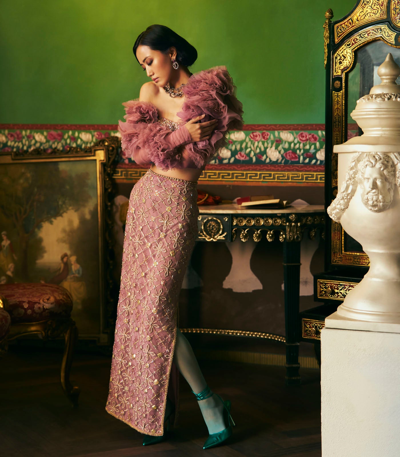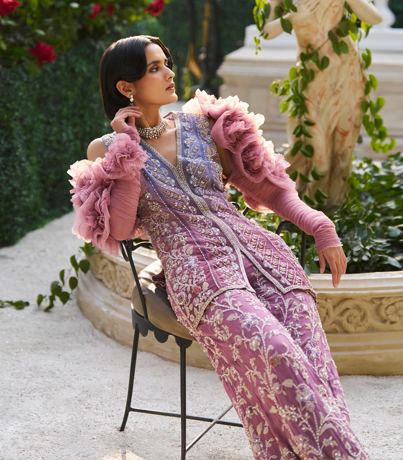 Sheer Embroidered Skirt Set