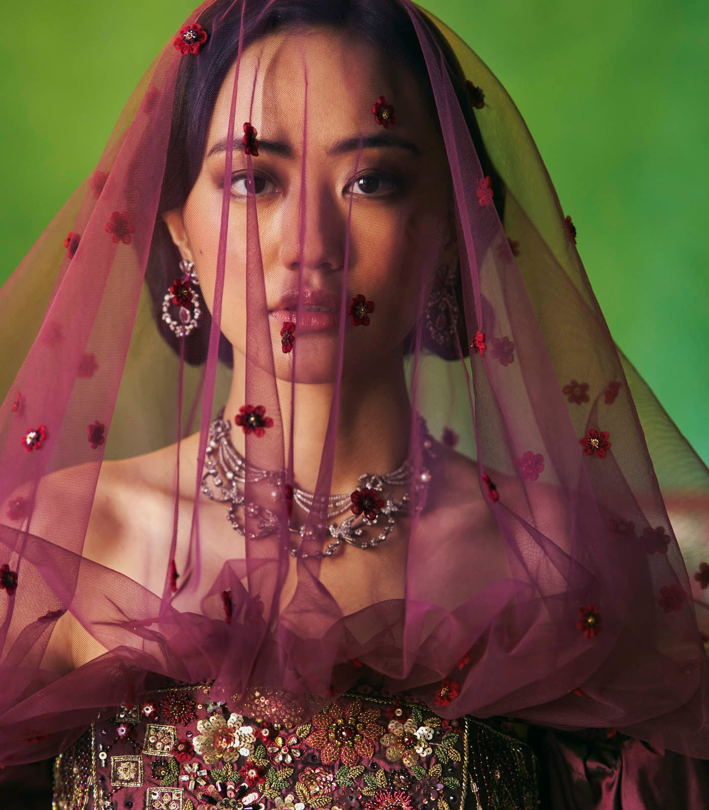 Embellished Gown with Cape