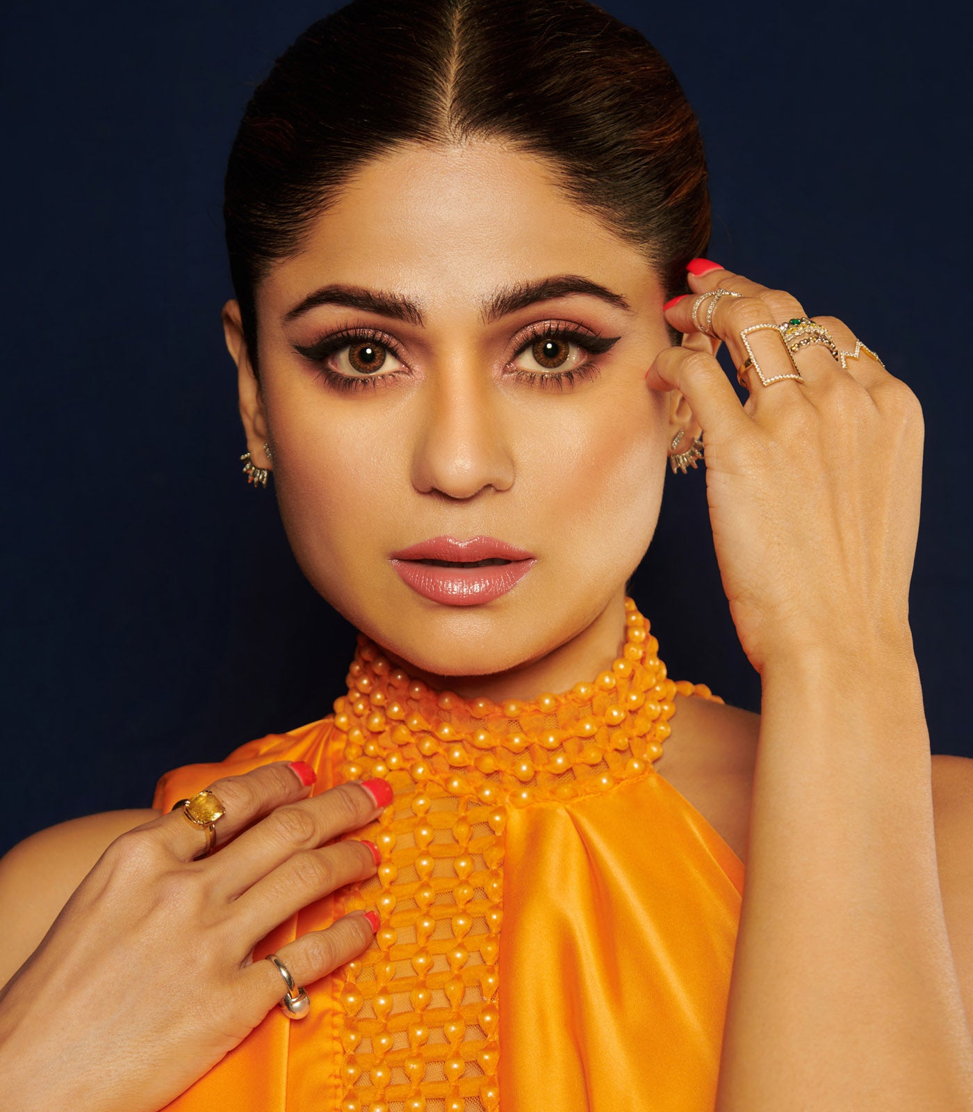 Priya Mani spotted in our orange strapless asymmetrical gown dress